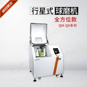 行星式球磨仪的研磨罐位于底部太阳轮的偏心位置。研磨罐绕轴自转,与公共的太阳轮转动方向正好相反,太阳轮与研磨罐的转速比为1:2。研磨罐中的球在于研磨罐一起运动时受到Coriolis力(即自转偏向力)的叠加影响。研磨罐和研磨球的运动速度之差产生强摩擦力和撞击力,因而释放了大量的动能。这种撞击和摩擦的组合使得行星式球磨仪研磨时的粉碎度极高。