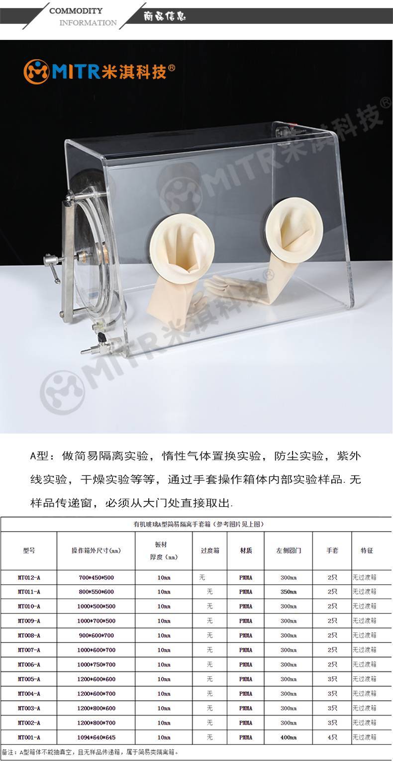 下图是简易手套箱尺寸,每款手套箱有多个尺寸更多手套箱详细请点击后方链接: 手套箱详细页面