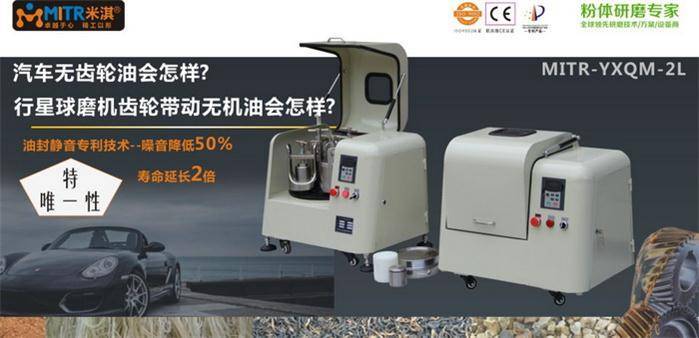 行星式球磨机是在一转盘上装有四个球磨罐,当转盘滚动时,球磨罐跟着转盘滚动,一起球磨罐在齿轮的带动下本身由中心轴带动作行星运动,罐中磨球在高速运动中做不规则运动发生冲击、剪切、研磨力达到研磨和混和样品的意图。行星式球磨机能用干、湿两种办法粉碎和混和粒度不同,资料各异的产品,效率高、效能大、研磨产品最小粒度可至0.1微米(即1.0×10-4mm)甚至纳米级。