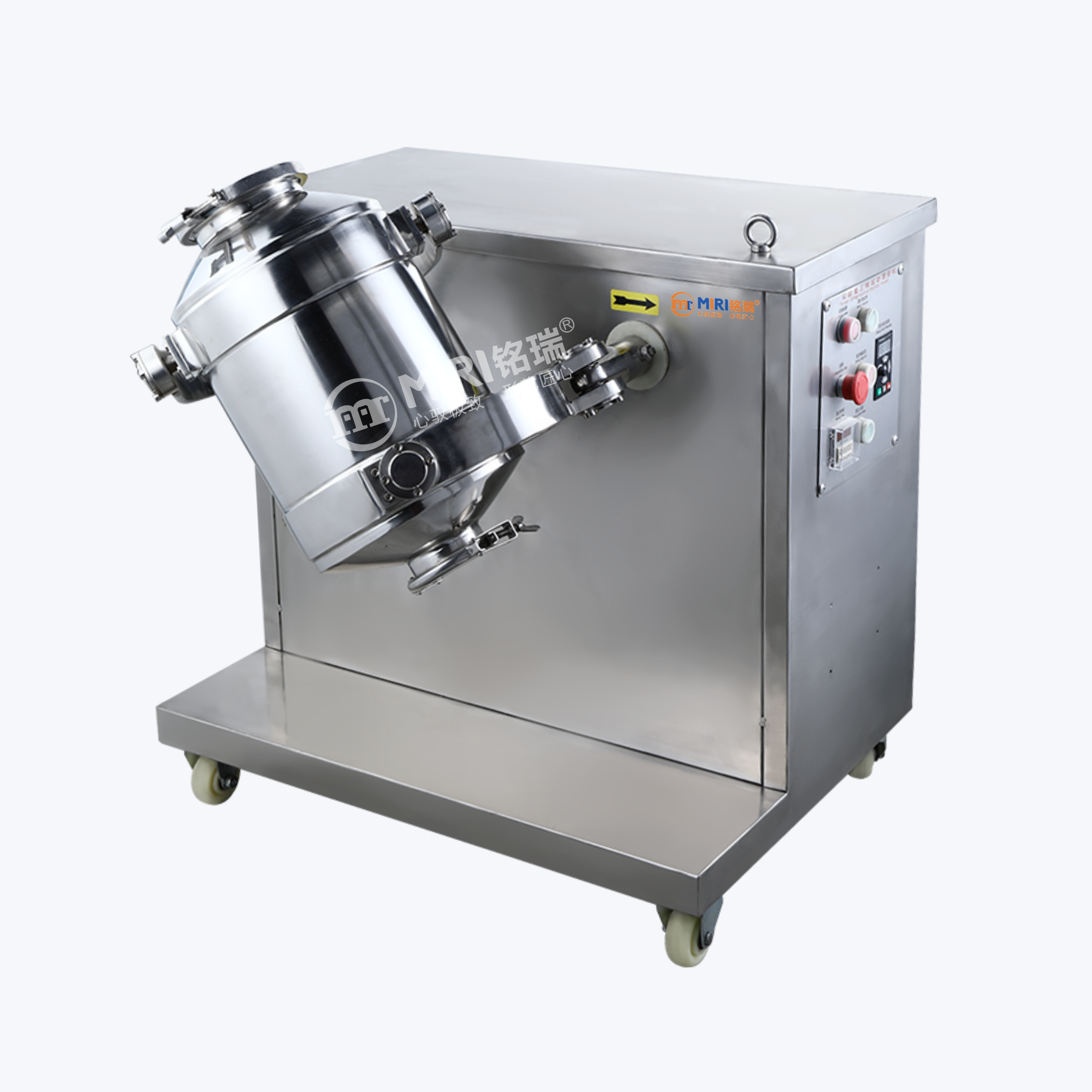 MIRI铭瑞三维混料机是是一款适用于各种科研单位的粉状、颗粒状物料的高效混合。通过混合筒空间上的三维运动,来消除物料因离心力作用产生的比重偏析、分层、积聚现象,实现多种物料之间相互流动、扩散,从而达到快速、均匀地混合物料。