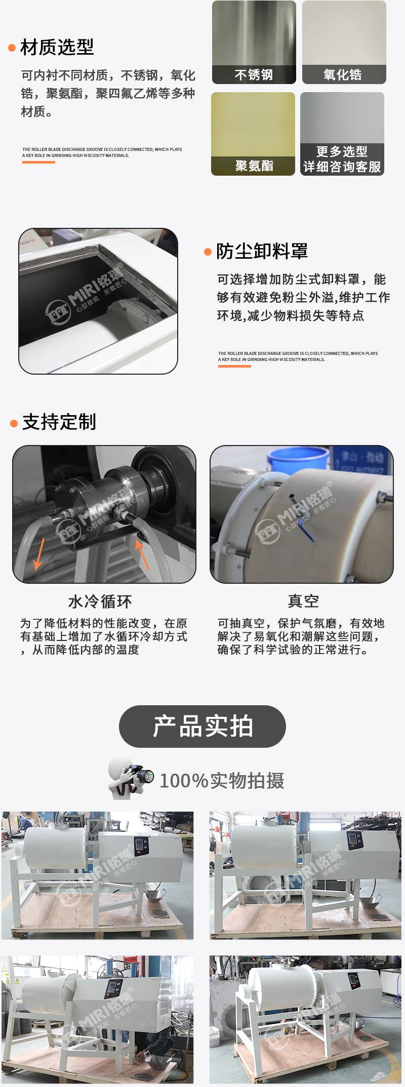 卧式轻型球磨机实验中试/生产型是GRIND-UP谷瑞开发的材料中试或量产应用型设备,以满足企业生产需要。方便材料从实验端到生产端的平滑过渡,确保工艺、方案的一致性,重复性,从而达到材料出品的性能稳定。我司滚筒球磨机品种与规格齐全,成建制,成系列。主要产品系列有:干磨型球磨机、湿磨型球磨机、内衬型球磨机、磨筛型球磨机、实验型球磨机、各种定制型等。