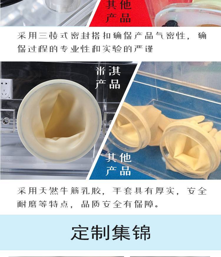 在配合科研单位进行低能量放射性物质的实验工作,微生物接种的无菌操作及化学物品定性定量分析等有关密闭性隔离操作,均可在操作箱内进行工作。生化、冶金、电子、化工、地质、矿产、医药、磁性材料、装备电池、生物培育、食品包装、电池材料等需要保护气氛下进行加工的过程中。该产品是高等院校、科研单位、企业实验室开展科学实验的理想装置。