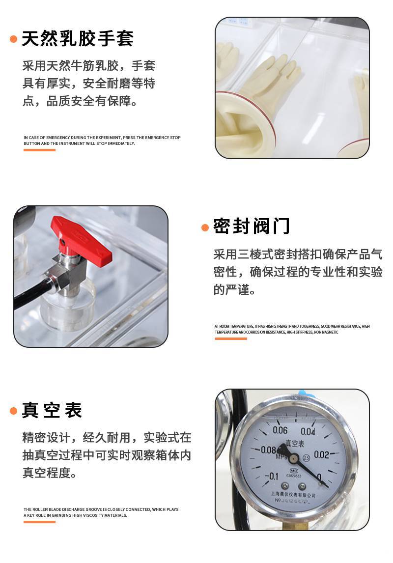 在配合科研单位进行低能量放射性物质的实验工作,微生物接种的无菌操作及化学物品定性定量分析等有关密闭性隔离操作,均可在操作箱内进行工作。生化、冶金、电子、化工、地质、矿产、医药、磁性材料、装备电池、生物培育、食品包装、电池材料等需要保护气氛下进行加工的过程中。该产品是高等院校、科研单位、企业实验室开展科学实验的理想装置。