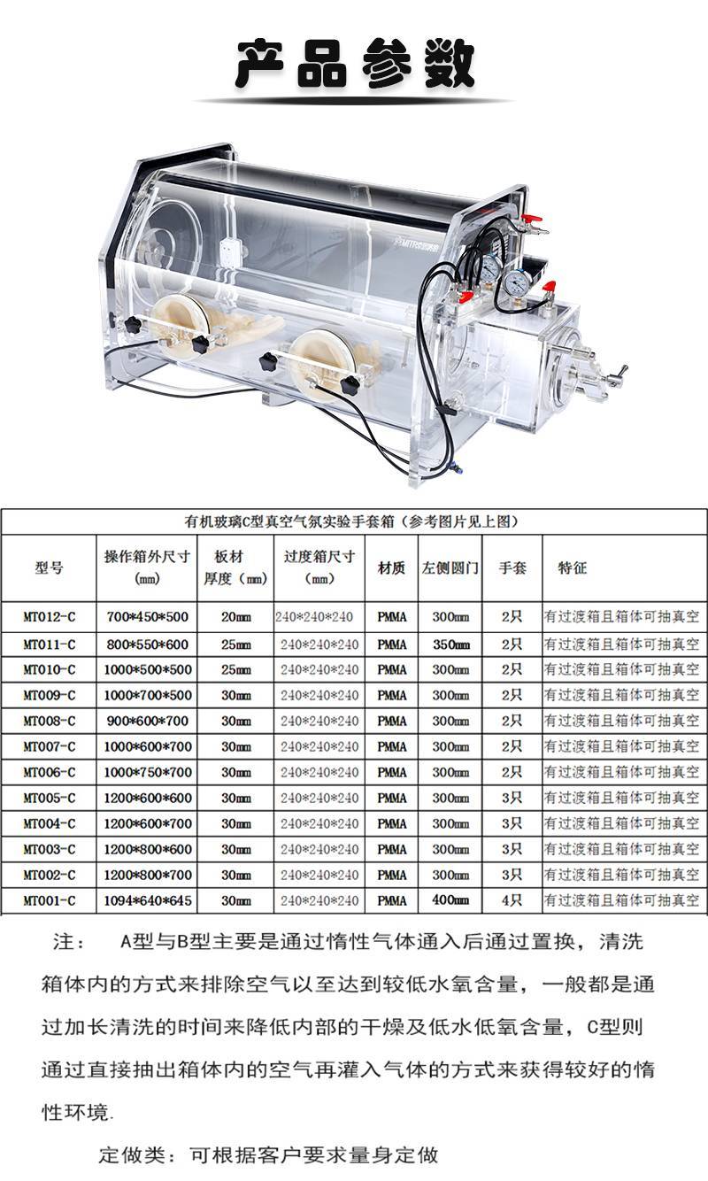 C型亚克力真空手套箱