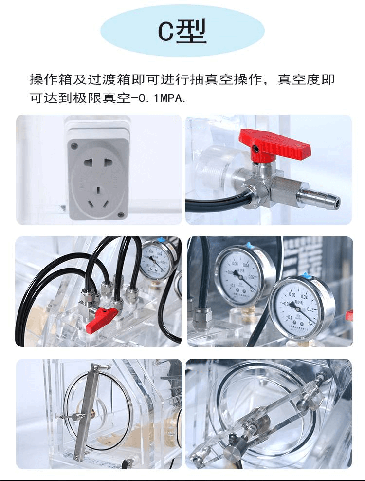 在配合科研单位进行低能量放射性物质的实验工作,微生物接种的无菌操作及化学物品定性定量分析等有关密闭性隔离操作,均可在操作箱内进行工作。生化、冶金、电子、化工、地质、矿产、医药、磁性材料、装备电池、生物培育、食品包装、电池材料等需要保护气氛下进行加工的过程中。该产品是高等院校、科研单位、企业实验室开展科学实验的理想装置。