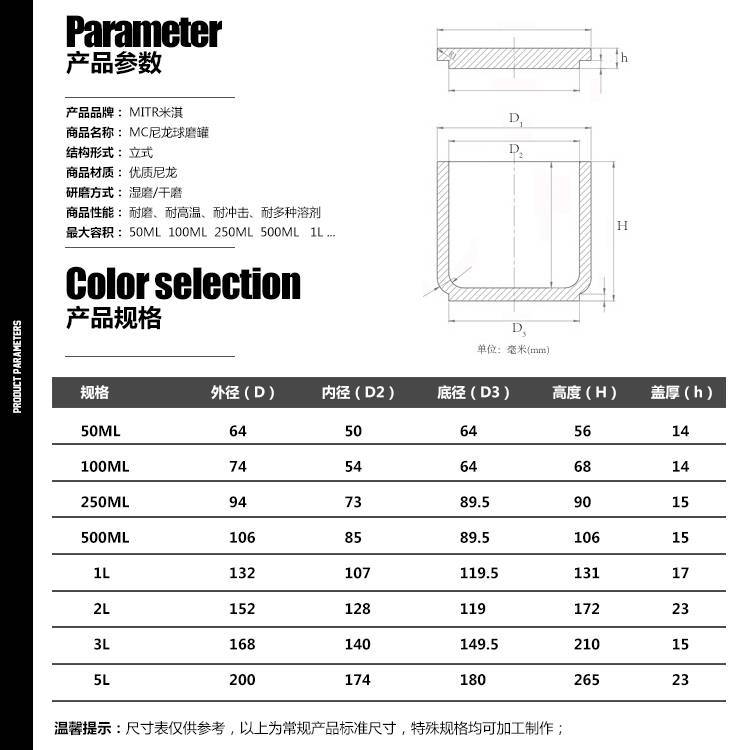 立式行星球磨机尼龙(MC)球磨罐是材料研磨配件中高性价比、综合性能好的材质罐体,重量轻、强度高、抗蠕变、耐磨、耐热老化。