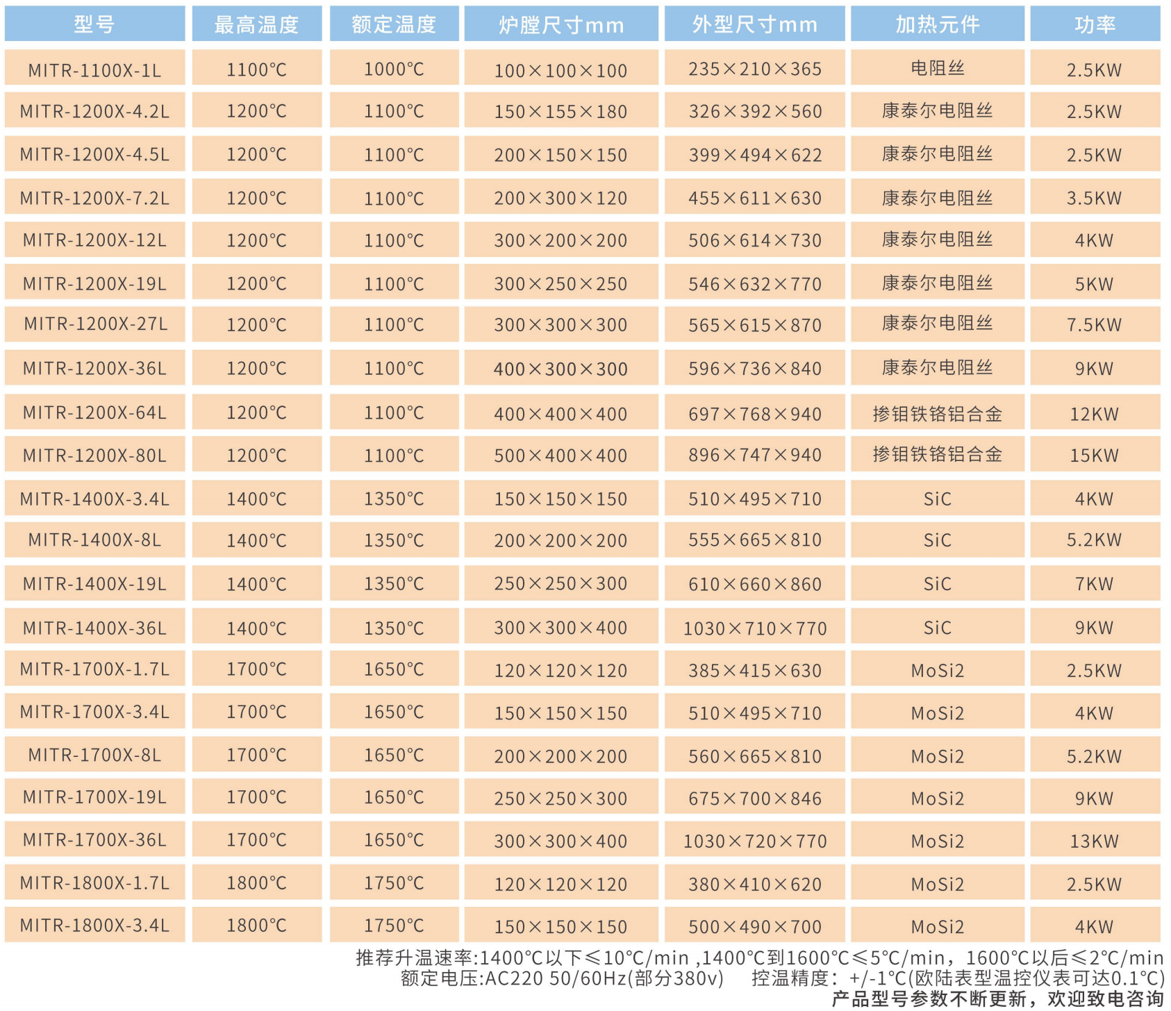 按额定温度区分一般有:1000 ℃以下,1000 ℃、1200 ℃、1300 ℃、1400 ℃、1600 ℃、1700 ℃、1800 ℃。