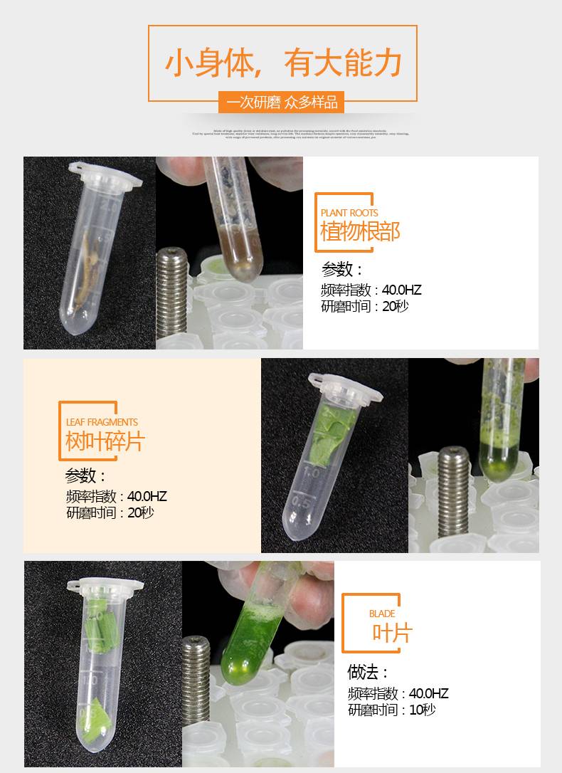 ■ gao效的动植物细胞组织破壁或悬浊液细胞的破碎,一次可处理 10 个以上样品.