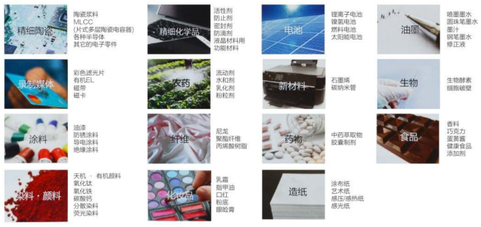 适用于锂电材料(磷酸铁锂、硅碳负极等)、硅微粉、氧化锆、氧化铝、硅酸锆、电子陶瓷、农药悬浮剂、磁性材料、墨水涂料、医药食品、生物化工及其他纳米级材料领域。